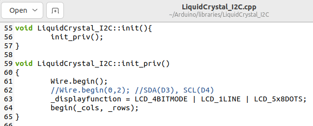 수정 전 :Wire.begin() - SDA(D2), SCL(D1))